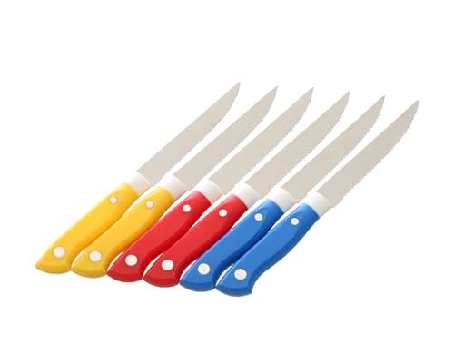 BB. - طقم سكاكين عالي الجودة من الفولاذ المقاوم للصدأ مكون من 6 قطع بمقبض بلاستيكي من بي بي (23 × 2 × 1.5 سم) – متعدد الألوان