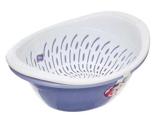 - سلة تصريف مزدوجة: تتكون هذه المصفاة من بولة مع فوهة ومصفاة/صفاية داخل الوعاء لغسل الخضروات أو الفاكهة بسهولة - سهلة التصريف والعمل بها.