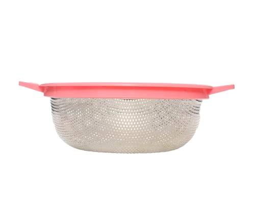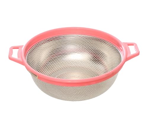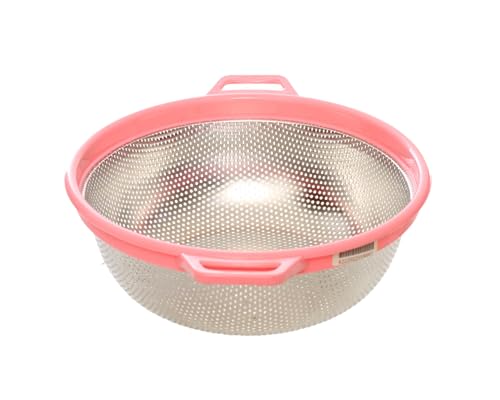 BB. - مصفاة دائرية من فولاذ مقاوم للصدأ عالي الجودة مع إطار بلاستيكي ومقبض من بي بي (27 سم) - لون وردي
