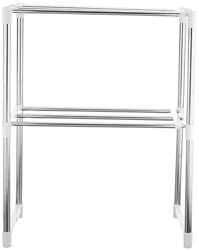 BB - بي بي حامل مطبخ متعدد الاغراض قابل للتمدد من الستانلس ستيل مع رفين مقاس 85 سم × 60 سم × 25 سم، فضي