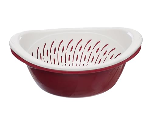 BB - طبق بلاستيك بيضاوي مع مصفاة، مقاس 34 سم × 27.5 سم × 13 سم، رمادي/أبيض، من بي بي
