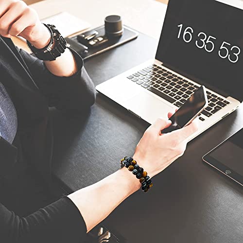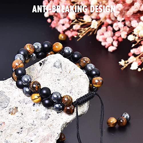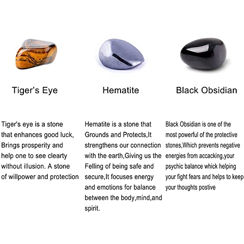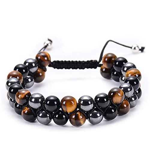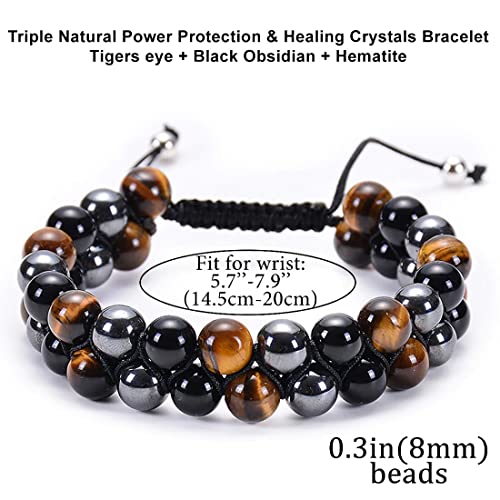 Generic - سوار كريستالات علاجية ثلاثية طبيعية لحماية الطاقة من بي بي شوب - عين النمر + زجاج بركاني اسود + حجر الدم - خرز حجري - يجلب الحظ السعيد والازدهار - سوار طاقة ثلاثي للرجال والنساء
