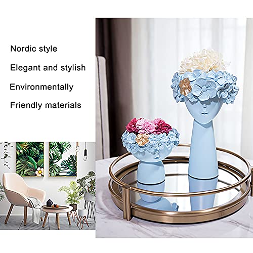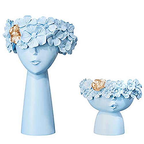 BB&UU - مزهريات مزخرفة بشكل وجه منحوت يدويا من بيبي اند يويو، مزهرية من الراتنج للزهور للديكور، مزهرية فاخرة لتزيين غرفة المعيشة والمكتب والترابيزة- لون ازرق للنساء والاطفال- قطعتين