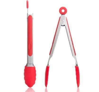 - ملقط شواء بتصميم قفل مشبك شواء من الستانلس ستيل غطاء سيليكون مقبض مساكة مطبخ Samazon09881847