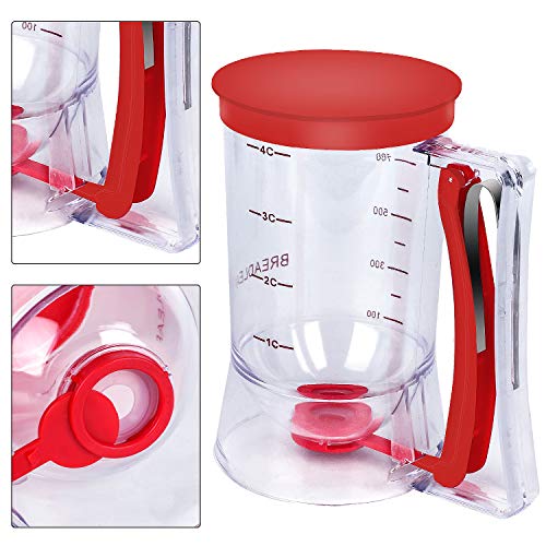 - 【مثالي】 يمكن لموزع الخليط تخزين الكمية المناسبة من الخليط بأناقة. ضع ببساطة العجينة المختلطة جيدًا في الموزّع، واسحب المقبض حتى يتم سكب المزيج المرغوب فيه في الصينية. اجعل تجربة الخبز الخاصة بك نظيفة ومرتبة! موزع عجينة البان كيك.