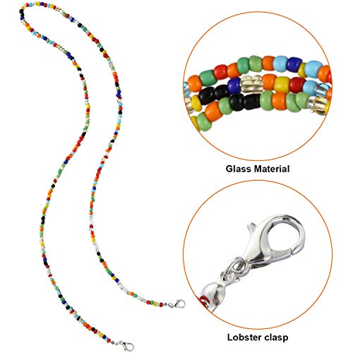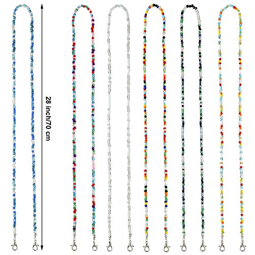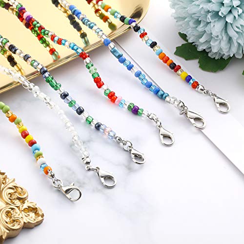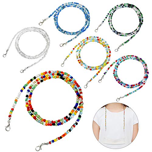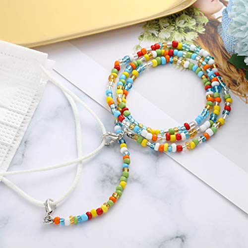 BBTO - 6 قطع من شرائط تزيين الوجه المطرزة بخرز ملون، حامل غطاء الوجه، سلاسل تمديد الاذن، اشرطة قلادة مطرزة للنساء للتعليق حول الرقبة