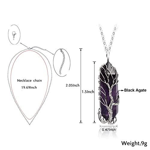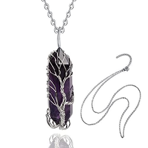BBXWANG - سلسلة من احجار الكريستال والكوارتز الطبيعي واحجار كريمة بدلاية بتصميم شجرة الحياة ملتف للعلاج والحظ الجيد مناسبة للنساء لون فضي