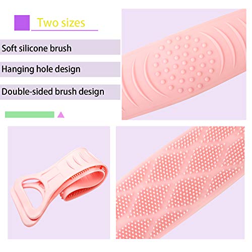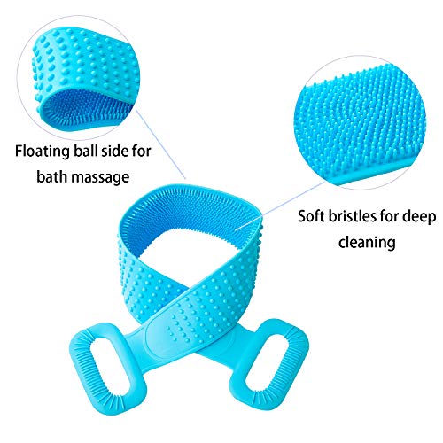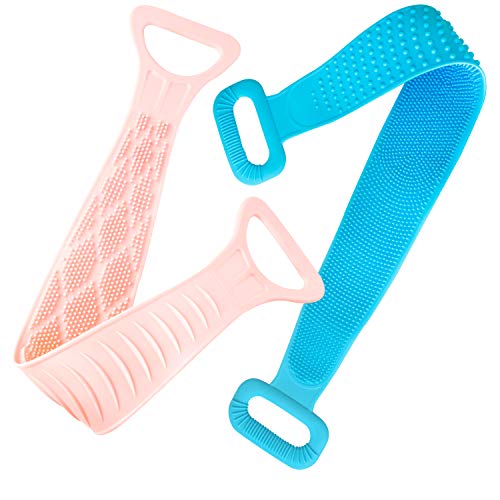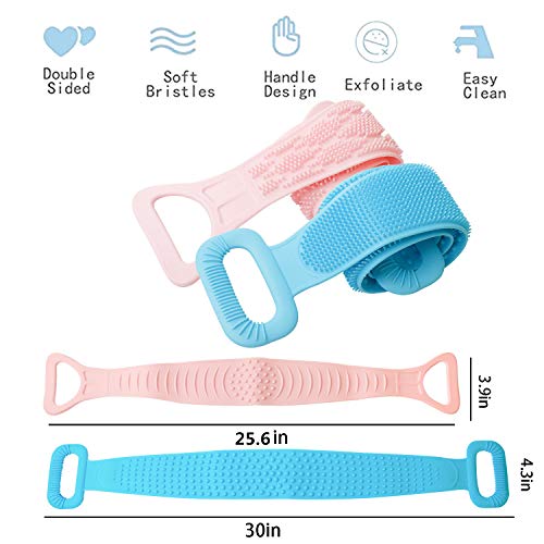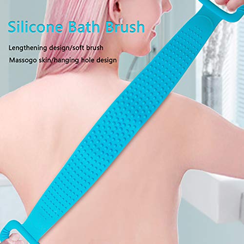 BCU - منظف الظهر من السيليكون ، فرشاة استحمام بالجسم مزدوجة الجانب ، فرشاة تقشير طويلة للجسم من الخلف لمستلزمات الحمام للرجال والنساء