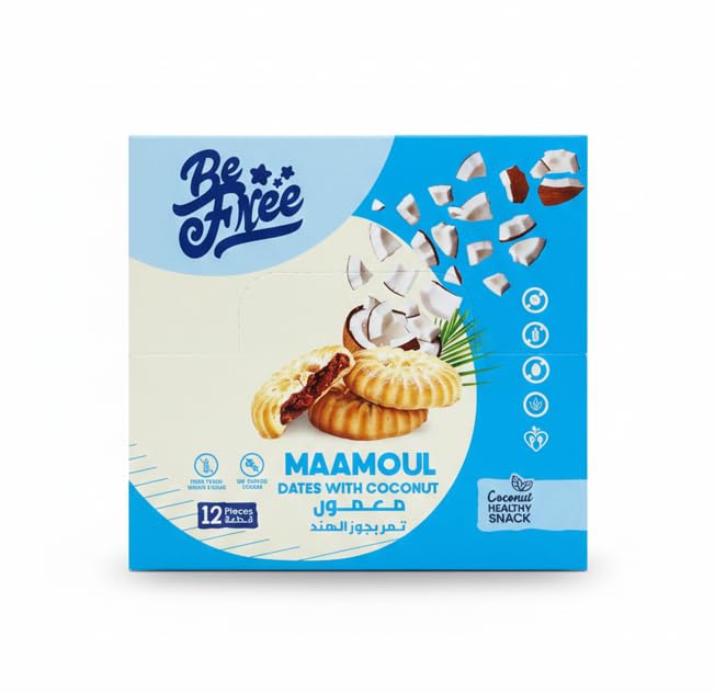 - معمول محشو بالتمر الفاخر بجوز الهند من بي فري (عبوة مكونة من 12 قطعة بوزن 20 جرام).