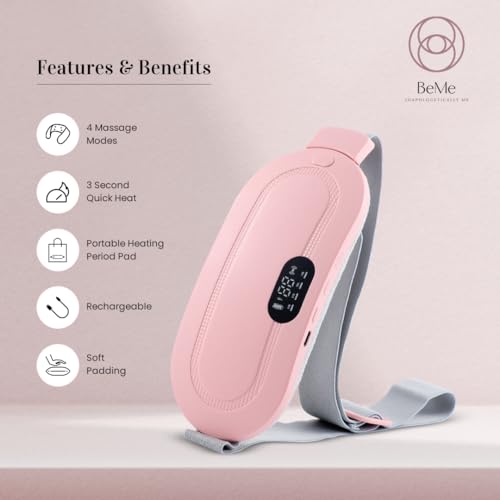 Be Me - وسادة تدفئة محمولة لاسلكية لتخفيف آلام الدورة الشهرية، وسادة تدفئة للمعدة مع تعديل درجة الحرارة بـ 3 سرعات و4 أوضاع تدليك، وسادة تدفئة للظهر والبطن للنساء من بي مي (بديل لـ