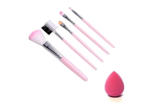 Generic - طقم فرش مكياج بينك للنساء والفتيات من بي اي من 5 قطع مع فرشاة مزج مستحضرات تجميل بلون بينك (6 قطع)