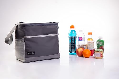 Beach Cool - لانش باج مبطنة بسعة 26 لتر لتخزين الطعام الساخن/ البارد مع حزام قابل للتعديل بيتش كول، لمسة نهائية عصرية بلون رمادي غامق