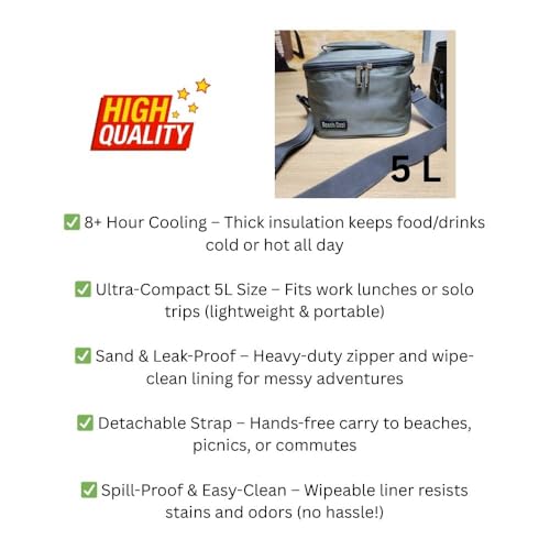 - جاهزة للمغامرة طوال اليوم: سعة صغيرة 5 لتر تحمل وجبات الغداء للعمل أو أعياد النزهة أو الوجبات الخفيفة على الشاطئ أو أساسيات السفر.