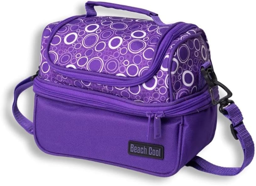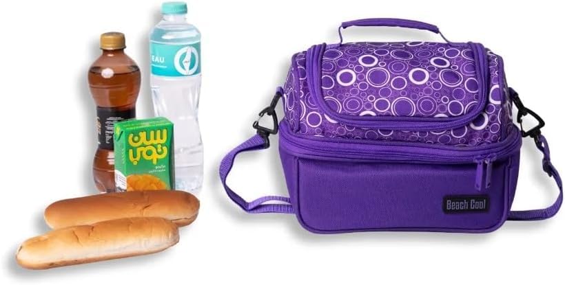 Beach Cool - شنطة غداء سعة 7 لتر بجيوب حرارية مزدوجة للأطعمة الساخنة/ الباردة من بيتش كول، حزام قابل للتعديل - لون أرجواني