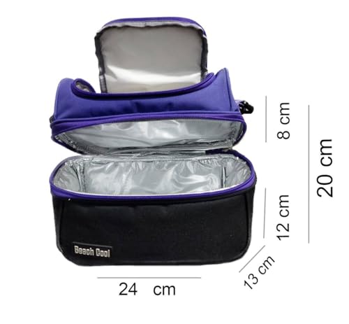 Generic - شنطة تخزين طعام من بيتش كول، 6 لتر، مقسمة الى طابقين، موف وأسود