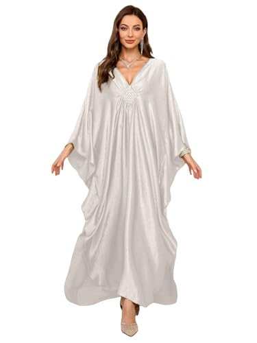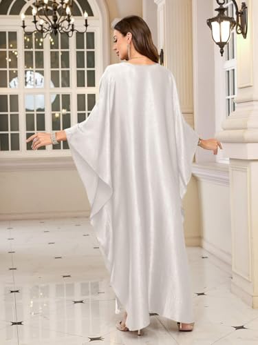 Generic - فستان كافتان للنساء، مصنوع من القماش الخفيف، باللون الأبيض، مقاس واحد، بتصميم كافتان مع أكمام خفاشية