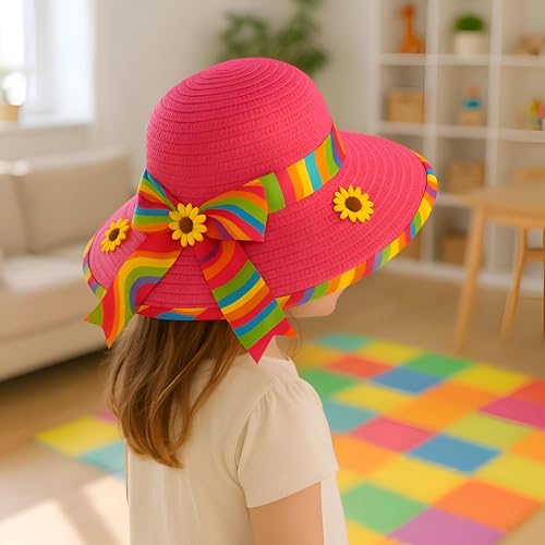Generic - قبعة شاطئ - قبعة شاطئ صيفية جيدة التهوية بحافة عريضة وشريط قوس قزح ملون لمغامرات ممتعة في الهواء الطلق