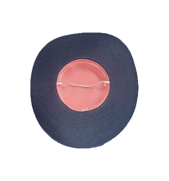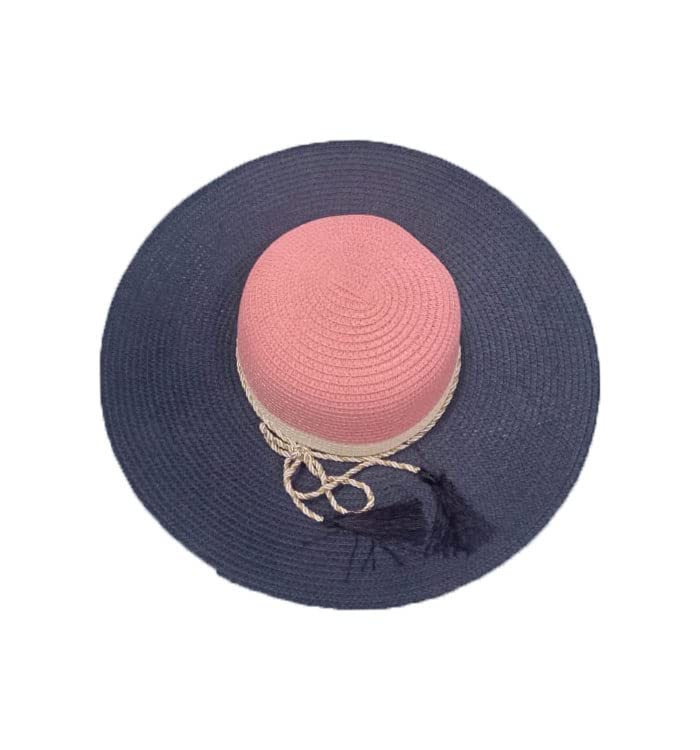 Generic - قبعة شاطىء ورحلات من الخوص زهرى فى كحلى ، مقاس موحد للنساء