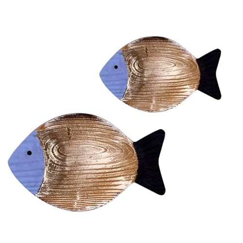 Generic - ديكور على شكل سمكة بحيرة مستوحاة من الشاطئ - لوحة فنية جدارية خشبية مصنوعة يدويًا لموضوع بحري في غرف النوم أو المطبخ أو الردهة، لمسة ساحلية دافئة، مجموعة من قطعتين