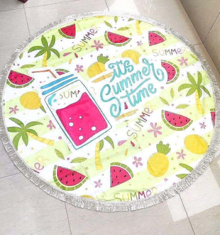 - 🏖️ مخصص للصيف: مثالي للشاطئ، البحر، البسين أو النزهات الخارجية. ✨ خامة قطيفة مستوردة: مريحة، فخمة وعالية الجودة. 🌟 طباعة ديجيتال ترندي: ألوان صيفية حيوية تبقى زاهية مع الاستخدام. 💪 ظهر جلد متين: يحمي المفرش وسهل التنظيف بعد الاستعمال. 📏 المقاس المناسب: 140×140 سم – مثالي للأفراد والعائلات. 🎨 تنوع في التصميمات: اختاري الشكل اللي يليق مع شخصيتك وستايلك.