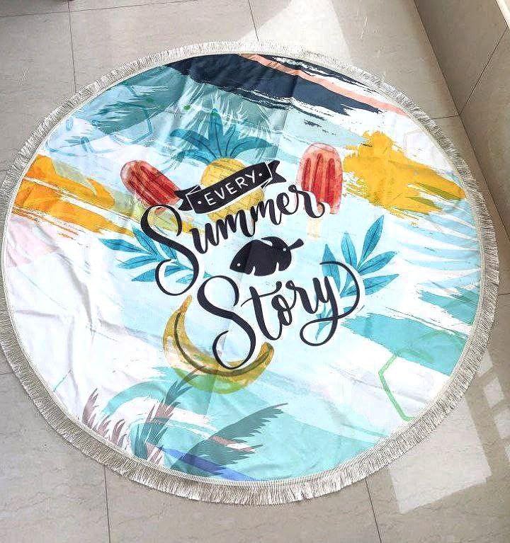 Generic - مفرش شاطئ 140×140 سم – خامة قطيفة ديجيتال مستوردة مع ظهر جلد متين، تصميمات صيفية ترندي