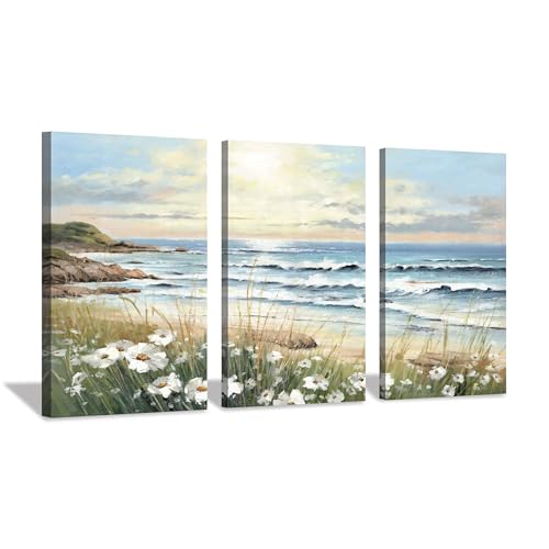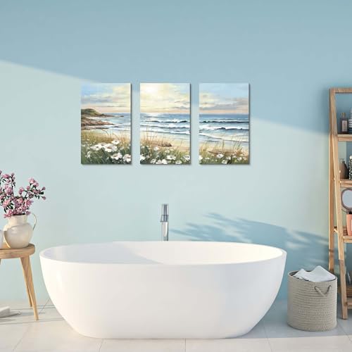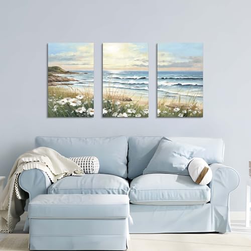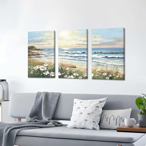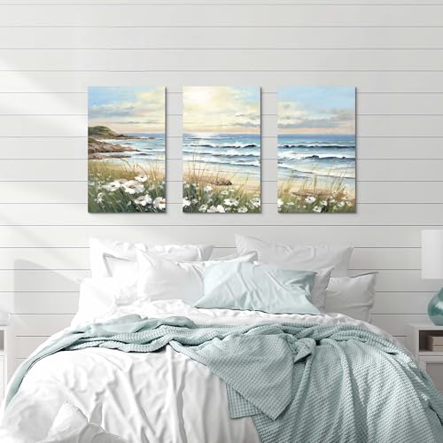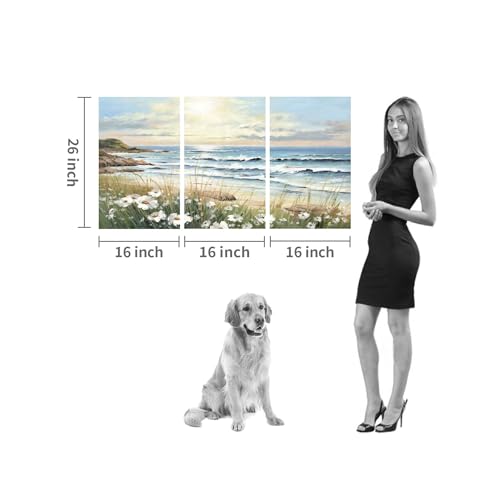 Hardy Gallery - لوحة فنية جدارية على الشاطئ: منظر بحري، صورة ساحلية، مشهد شاطئ ديكور للجدران، فن قماش على شاطئ البحر لديكورات المنزل 66 × 40 سم × 3 لوحات