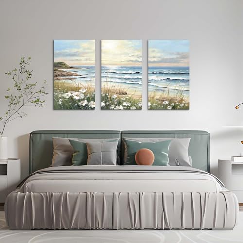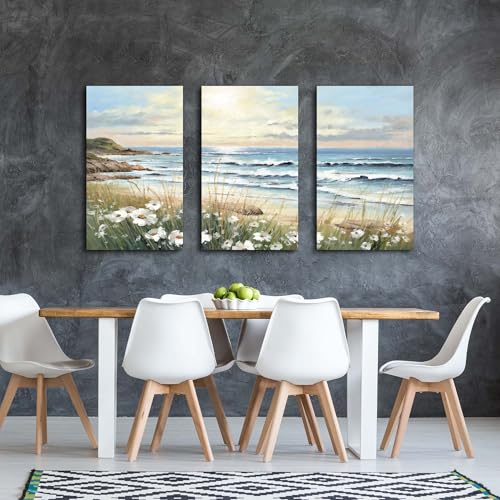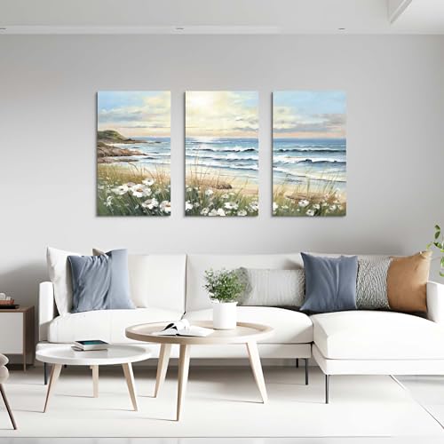 Hardy Gallery - لوحة فنية جدارية على الشاطئ: لوحة فنية على شكل منظر بحري، صورة ساحلية، ديكور حائط على شاطئ البحر وديكور غرفة المعيشة، 34 انش × 20 انش × 3 لوحات