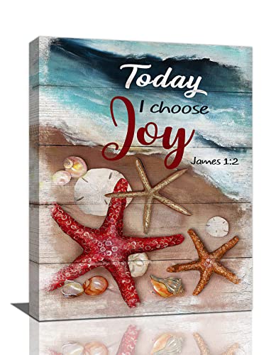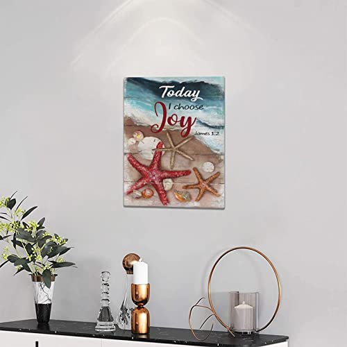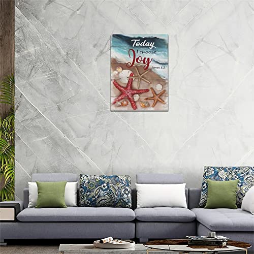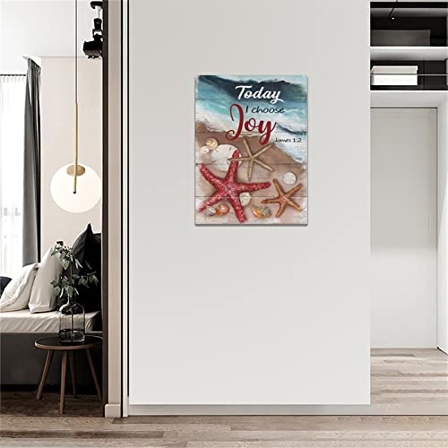 jerkboo - لوحة فنية جدارية بإطار على شكل صدف البحر ونجم البحر بتصميم ريفي ساحلي لديكور الحائط باقتباس Today I Choose Joy بتصميم فني تحفيزي للمنزل وغرفة المعيشة وغرفة النوم والحمام - مقاس 30×40 سم تقريباً