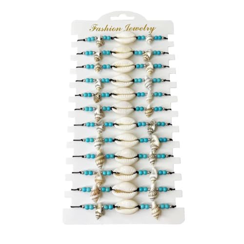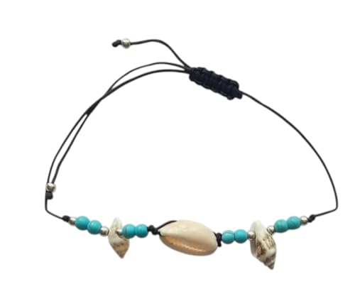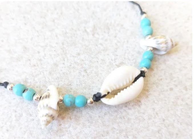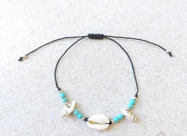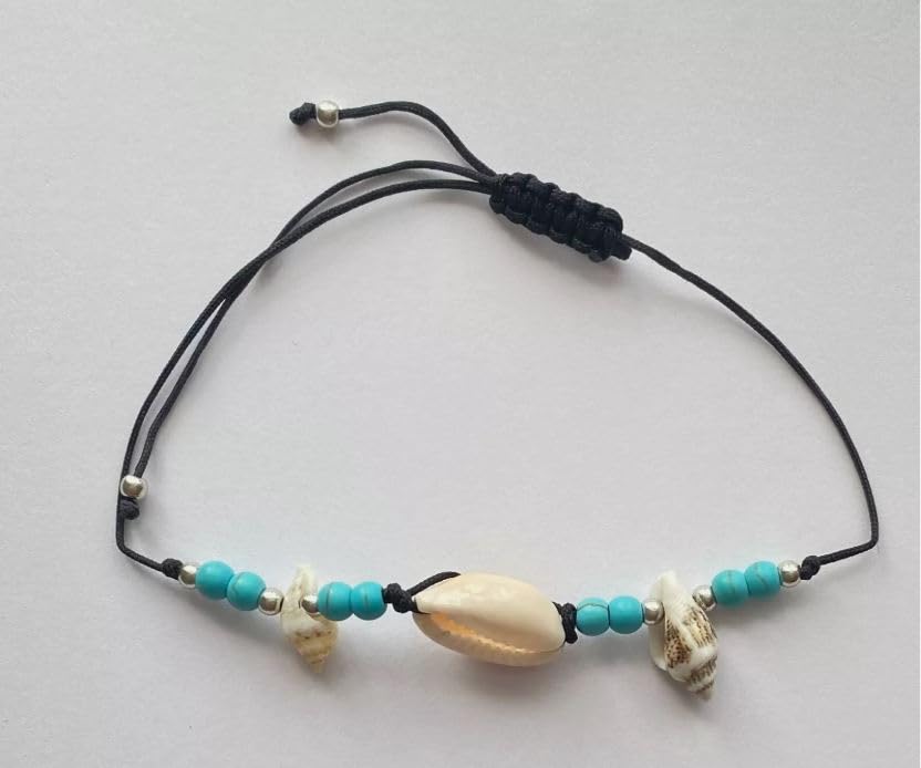 Generic - طقم اساور على شكل صدفة الشاطئ وخرز تركواز وحبل اسود، قطعتين
