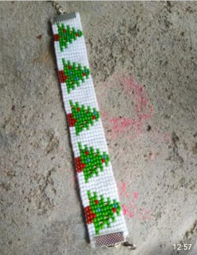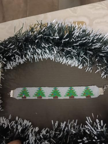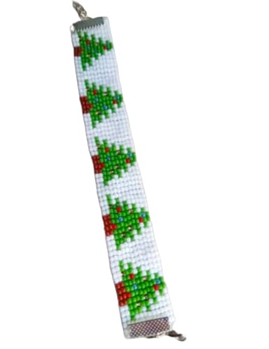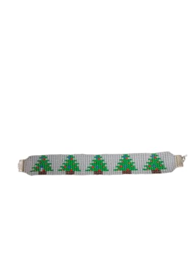 Generic - سوار مطرز، نمط شجرة الكريسماس، خلفية بيضاء، خرز اخضر احمر، مجوهرات عطلة مصنوعة يدويا