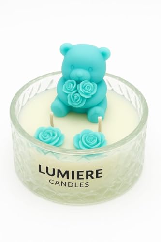 Generic - شمعة دب مع ورود، تصميم ديكوري، لون تركواز، زجاج منقوش (قهوة)
