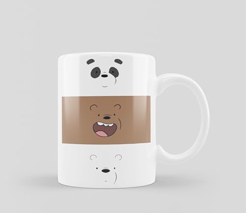Generic - مج قهوة مطبوع بنمط دب - 0913، بورسلين، أبيض