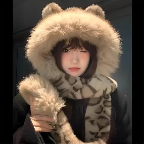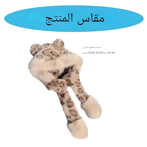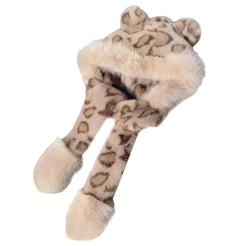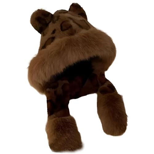 Generic - غطاء رأس قطيفة بأذني دب - قبعة فرو ناعمة ودافئة للنساء والبنات مع غطاء للأذنين، مناسبة للاستخدام الخارجي في الشتاء والمناخ البارد، كالتزلج والمشي لمسافات طويلة
