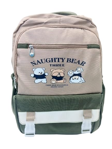 Generic - شنطة ظهر للاطفال من بير ثري - قماش بيج واخضر - شنطة مدرسية لطيفة للاطفال مع احزمة قابلة للتعديل وتصميم شخصيات