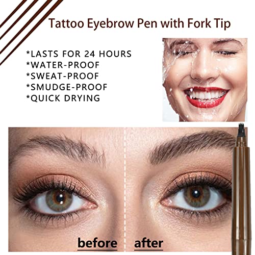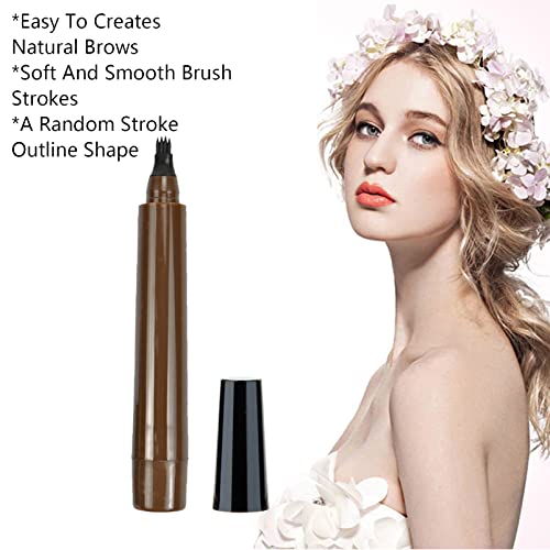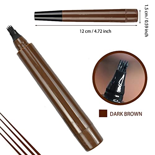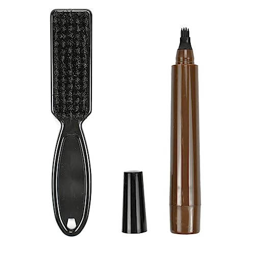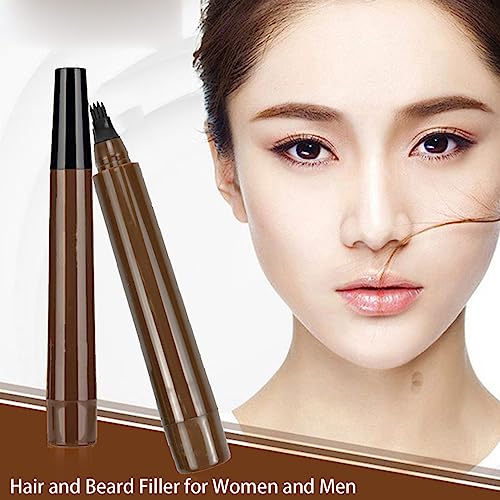 DMQ - قلم لملء فراغات اللحية للرجال بتصميم مقاوم للماء ويدوم طويلًا مع فرشاة، قلم تاتو للحواجب والشعر بطرف شوكي للنساء والرجال، بني غامق