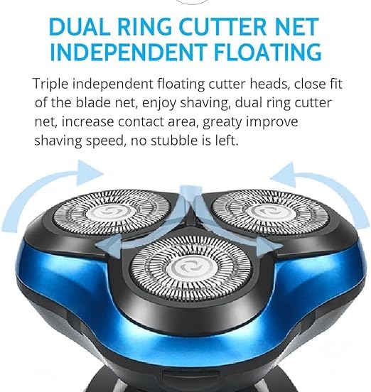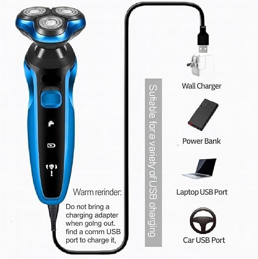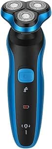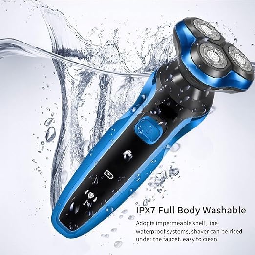 Generic - ماكينة حلاقة كهربائية دوارة بـ 3 رؤوس قابلة لإعادة الشحن للاستخدام الرطب والجاف مع شاشة ال سي دي للطاقة متعددة الوظائف ومقاومة للماء بدرجة IPX7 للوجه واللحية، لون أزرق