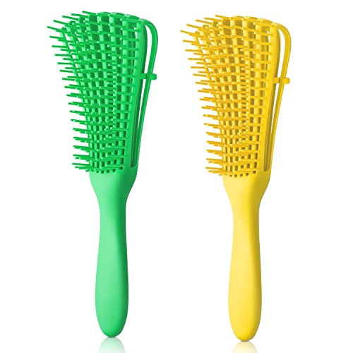 BEATURE - باتر فرشاة فك تشابك الشعر من قطعتين - فرشاة فك تشابك الشعر المجعد والشعر الطبيعي الاسود - فرشاة الشعر المجعد 3a الى 4c، رائعة للشعر الرطب الكثيف للنساء والاطفال، اخضر فاتح واصفر