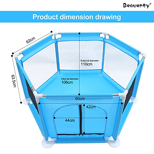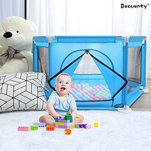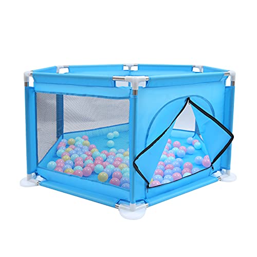 Beauenty - ساحة لعب للاطفال الصغار محمولة ومناسبة لوضعها في مركز الأنشطة على الأرضية، مع 50 كرة وسياج قابل للطي، للحماية والأمان أثناء اللعب والحبو، للاستخدام الداخلي والخارجي والحدائق من بيونتي (لون أزرق)