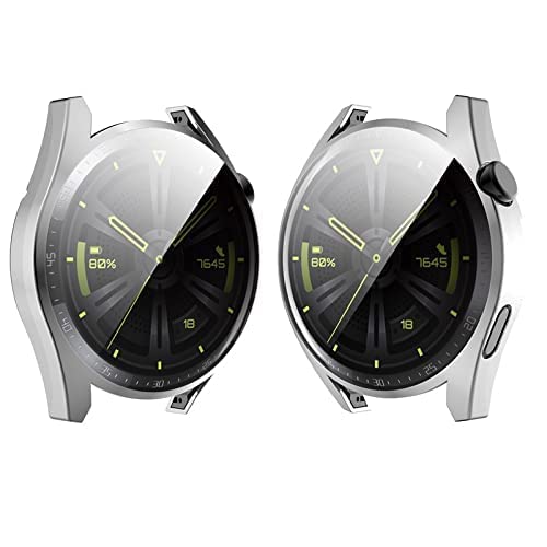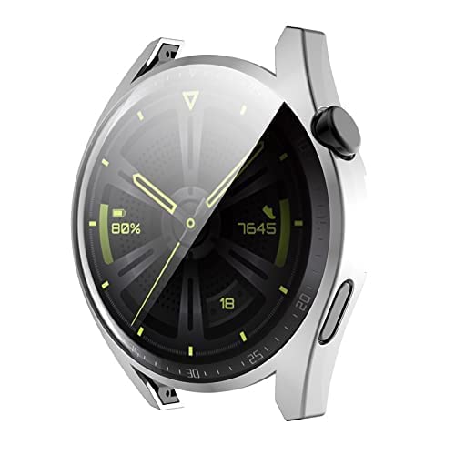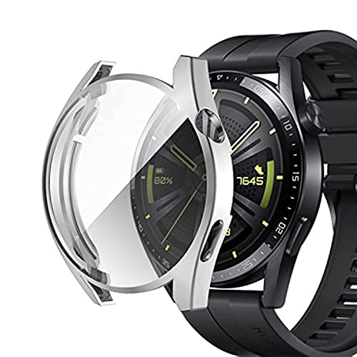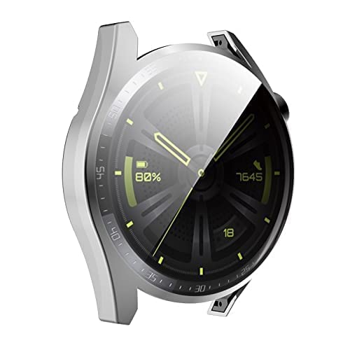 Beauenty - جراب شامل بطبقة من البولي يوريثين الحراري مطلي بالكهرباء ومقاوم للسقوط مع شاشة حماية لساعة هواوي ووتش GT 3 من بوونتي (46 ملم، فضي)