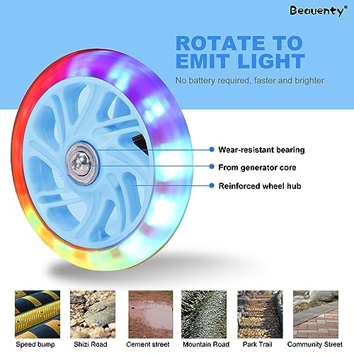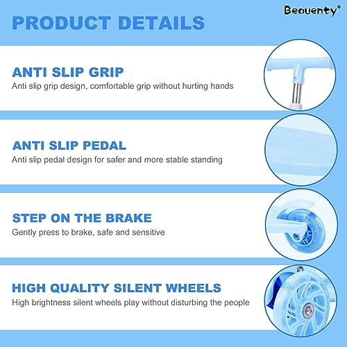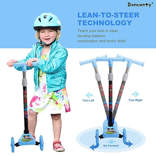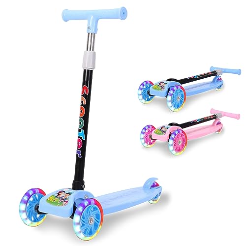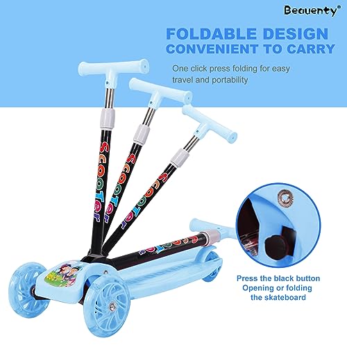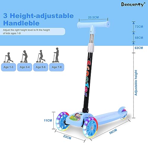 Beauenty - سكوتر للأطفال بثلاث عجلات، دواسة سكوتر للأطفال البنات والأولاد، سكوتر أطفال قابل للطي بارتفاع قابل للتعديل مع عجلات وامضة للأعمار من 2-8 سنوات من بيونتي (أزرق)، عدد العجلات: 3