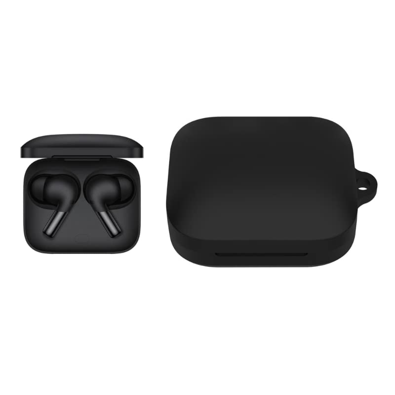 Beauenty - بيونتي جراب سيليكون لسماعات ون بلس بودز برو 2، غطاء حماية ناعم مقاوم للصدمات بلون سادة مع حلقة تثبيت بخطاف (اسود)، لسماعات رأس