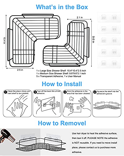 - خامة متينة وتجفيف سريع: إن رف زاوية الدش الخاص بنا مصنوع من مواد متينة وهندسة صلبة، مما يضمن عمرًا طويلًا. المادة المستخدمة هي الفولاذ المقاوم للصدأ SUS304، وهو قوي ومقاوم للصدأ. كما أنها تتمتع بتصميم جيد التهوية يصرف بسرعة ولا يجمع الماء للحفاظ على منتجات الحمام الخاصة بك جافة.