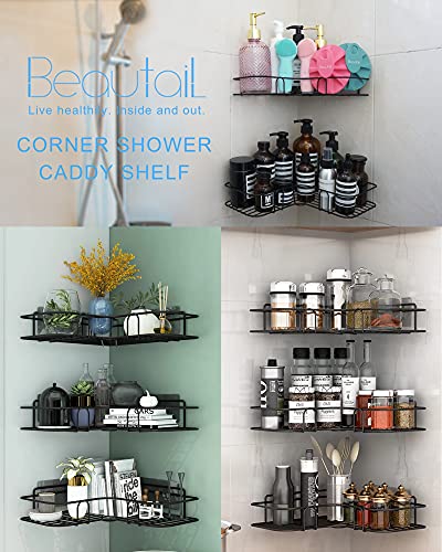 BEAUTAIL - رف منظم للحمام من بيوتيل، بتصميم عصري، لون فضي، مصنوع من الستانلس ستيل، موفر للمساحة مع تجفيف سريع، قطعتان