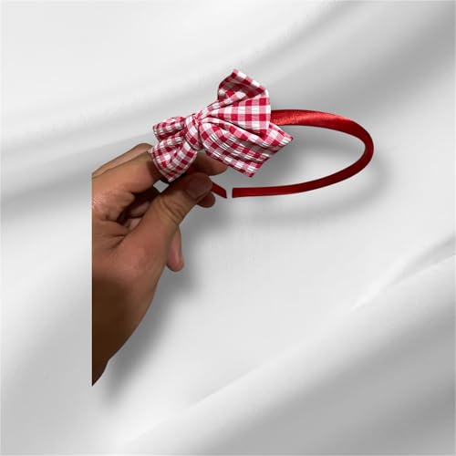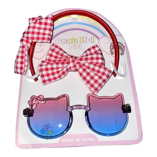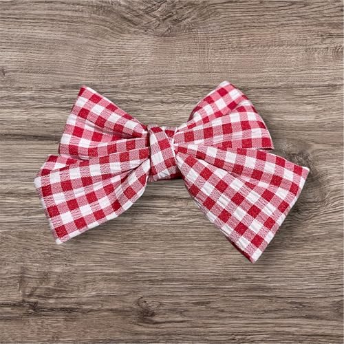 - تصميم فريد: مجموعة دبابيس شعر مع فيونكة مربعات حمراء وبيضاء وقطع زخرفية على شكل قطة بلون متدرج