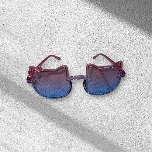 Generic - فيونكة شعر جميلة للبنات الصغيرات مع فيونكة مربعات، قطعتين من الزجاج على شكل قطة بلون ازرق متدرج وزهري