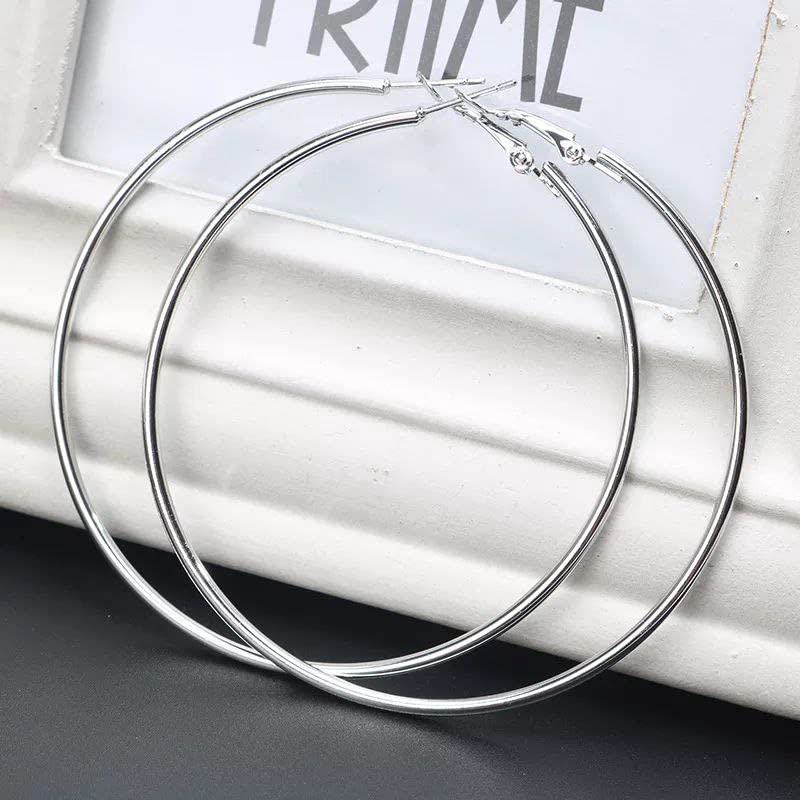 Generic - أقراط دائرية جميلة للنساء والبنات لون فضي (1)