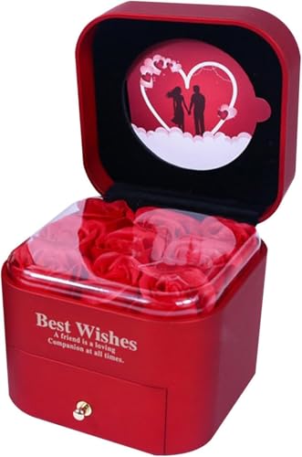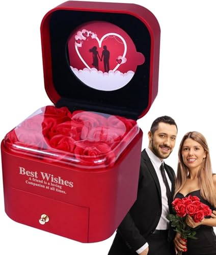 Generic - علبة تخزين مجوهرات جميلة بحامل خواتم و9 ورود محفوظة لتخزين السلاسل والخواتم والحلقان والأساور الحلقية لعيد الحب وعيد الأم والزفاف والذكرى السنوية وعيد الميلاد، لون أحمر