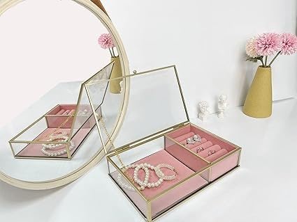 - صناعة مفصلة: مقابض جميلة على شكل لؤلؤ وزجاج شفاف تمامًا، سيكون صندوقًا مزخرفًا رقيقًا لعرض مجموعاتك، كما أنه ديكور جميل للمنزل/الغرفة أيضًا.
