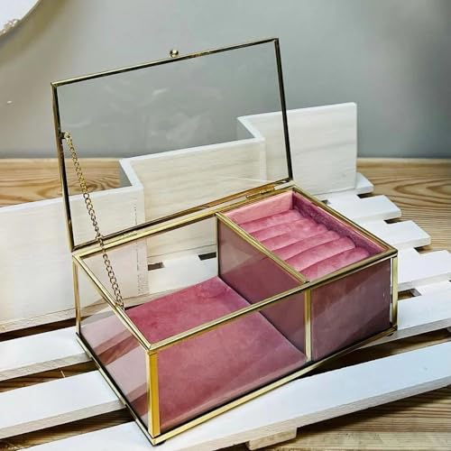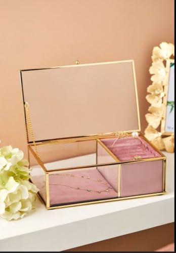 - تصميم أنيق: مصنوع من زجاج قوي وشفاف ومقاوم للحرارة للغاية ومعدن نحاسي فاخر يتميز بلمسة نهائية عتيقة غنية، والصدر المبطن بالمخمل الوردي الناعم يمنحه شعورًا أنيقًا وقديمًا.