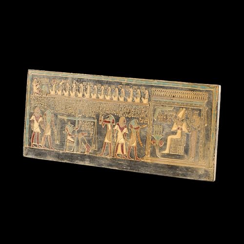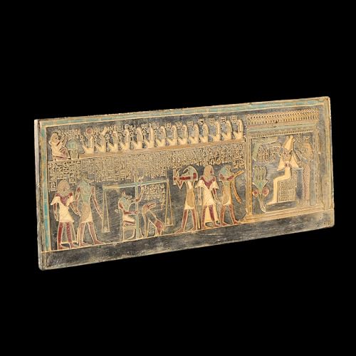 Generic - لوح حجري فريد كبير جميل يصور يوم الحساب عند القدماء المصريين بتصميم جميل يحتوي على منحوتات لأنوبيس (إله الموتى) وأمت وتحوت على حجر أسود، ثقيل ومطلي يدويًا، صنع في مصر